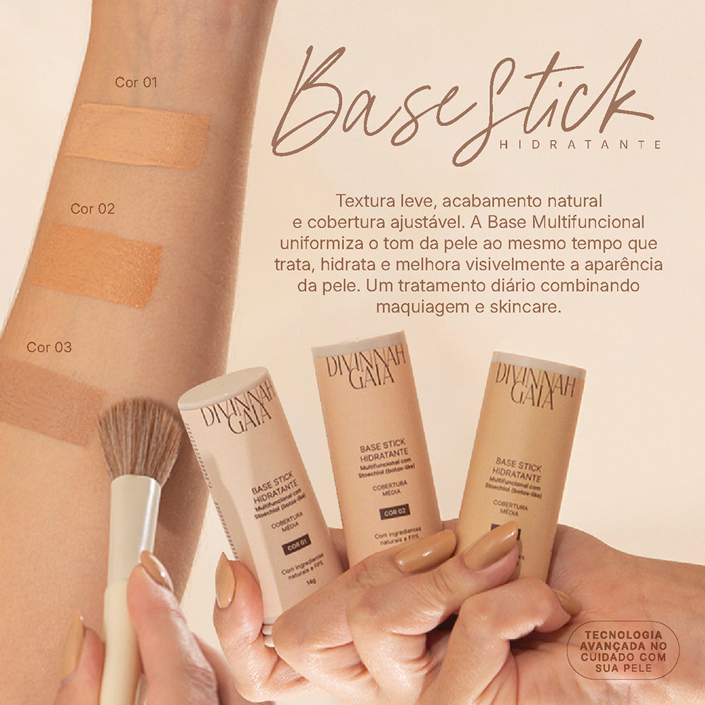A Base Multifuncional Hidratante é muito mais do que um item de maquiagem. Com textura leve, acabamento natural e cobertura ajustável, ela uniformiza o tom da pele ao mesmo tempo que trata, hidrata e melhora visivelmente a aparência da pele com o uso contínuo. Sua fórmula inovadora combina maquiagem e skincare, trazendo um verdadeiro tratamento diário com o poder do ativo Stoechiol, um botox-like natural.