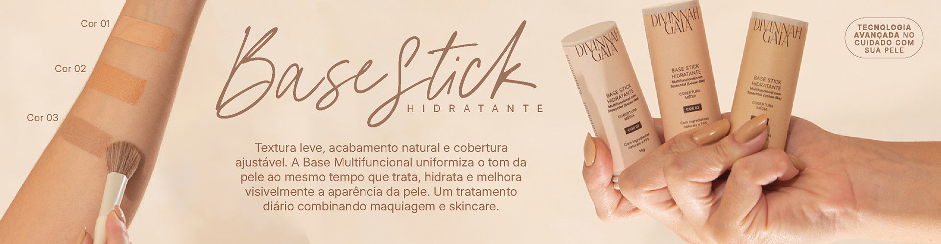 Essa base age como um tratamento contínuo: enquanto cobre, trata. Ideal para quem não abre mão de cuidar da pele todos os dias, mesmo com maquiagem.