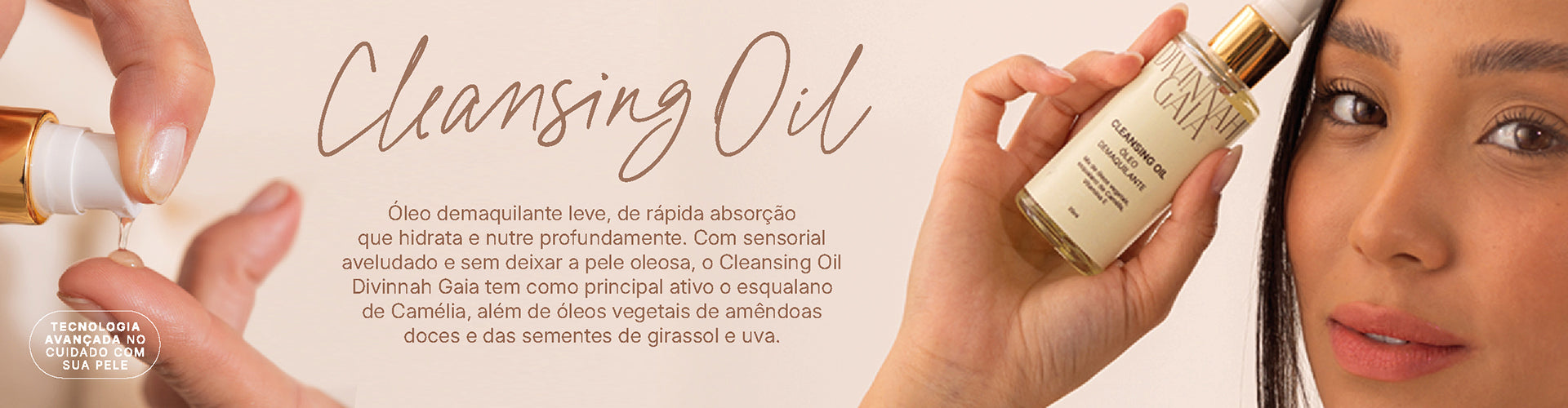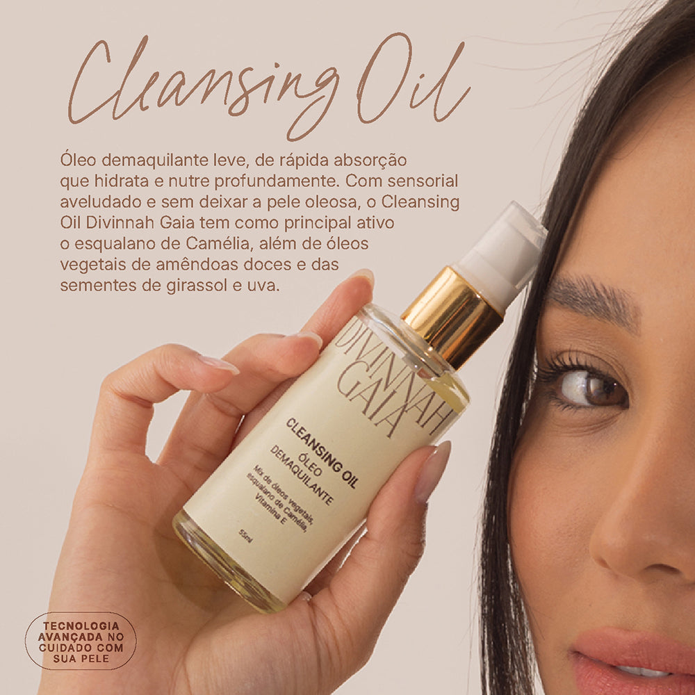 O Cleansing Oil da Divinnah Gaia chegou para completar sua rotina de skincare com uma limpeza profunda, sensorial aveludado e nutrição intensa. Feito com óleos vegetais leves e esqualano de camélia, um ativo luxuoso, tradicional na Ásia, ele dissolve maquiagem, poluição e resíduos sem agredir ou deixar a pele pesada.
