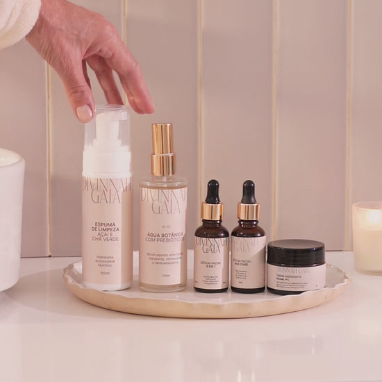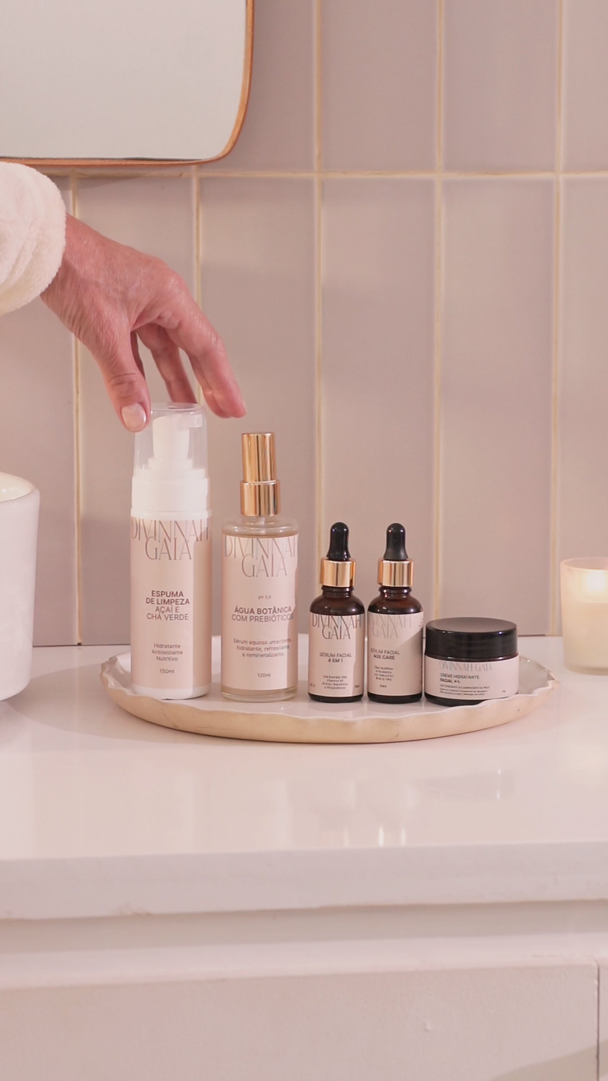 A Água Botânica é um sérum aquoso, uma água rica em extratos botânicos antioxidantes, remineralizantes e calmantes 100% naturais e livres de parabenos, petrolatos, ingredientes de origem animal e conservantes sintéticos. Sua formulação possui agentes hidratantes que mantêm a pele umectada, hidratada e nutrida. A Água Botânica da Divinnah Gaia possui prebióticos que auxiliam na manutenção do equilíbrio do microbioma e fisiologia da pele, do manto lipídico e do pH, tornando sua pele mais saudável, bonita e equilibrada.